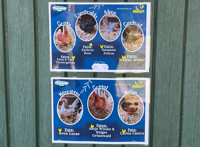 Ein Team aus Großbeeren half nicht nur beim Bau eines sicheren Hühnergeheges. Damit die Hühner-WG auch langfristig gehalten werden kann, hat der Jugendhof Hühnerpatenschaften vergeben. Und klar: Elf Paten für Alma, Gertrud, Henriette & Co. wurden schnell im Rieck-Team gefunden.